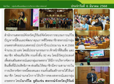 สำนักงานสหกรณ์จังหวัดบุรีรัมย์จัดโครงการอบรมการแก้ไขปัญหาหนี้สินและพัฒนาคุณภาพชีวิตสมาชิกสหกรณ์/กลุ่มเกษตรกรด้วยระบบสหกรณ์ ประจำปีงบประมาณ พ.ศ.2568 จำนวน 20 แห่ง โดยมีประธานกรรมการ เจ้าหน้าที่สินเชื่อ และสมาชิก พร้อมทีมโค้ช รวมทั้งสิ้น 92 คน โดยมีวัตถุประสงค์เพื่อส่งเสริมสหกรณ์และกลุ่มเกษตรกร ให้มีการบริหารจัดการสินเชื่อที่มีประสิทธิภาพ
