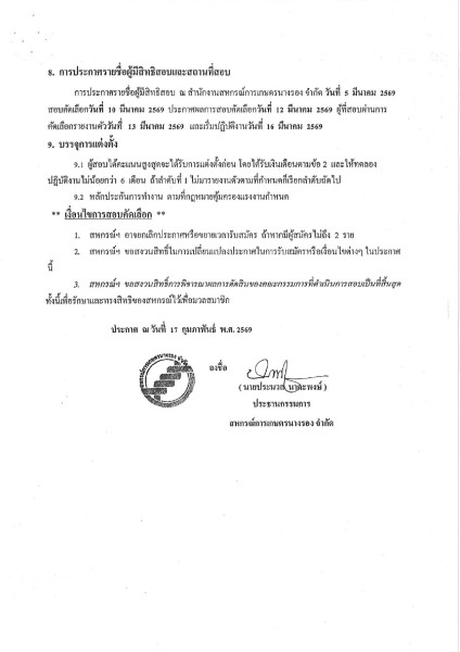 ประกาศ ณ วันที่ 17 กุมภาพันธ์ 2569